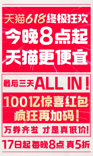与此同时,天猫618也进入了最后三天终极狂欢。天猫不仅延续了以往的几大核心玩法,还加码投入100亿惊喜红包,红包面额从15元至1900元不等,最高折扣力度可达8.5折。此外,美妆、服饰、运动户外等六大行业还加码加券,消费者叠加使用惊喜红包和品类券,最高可省980元。