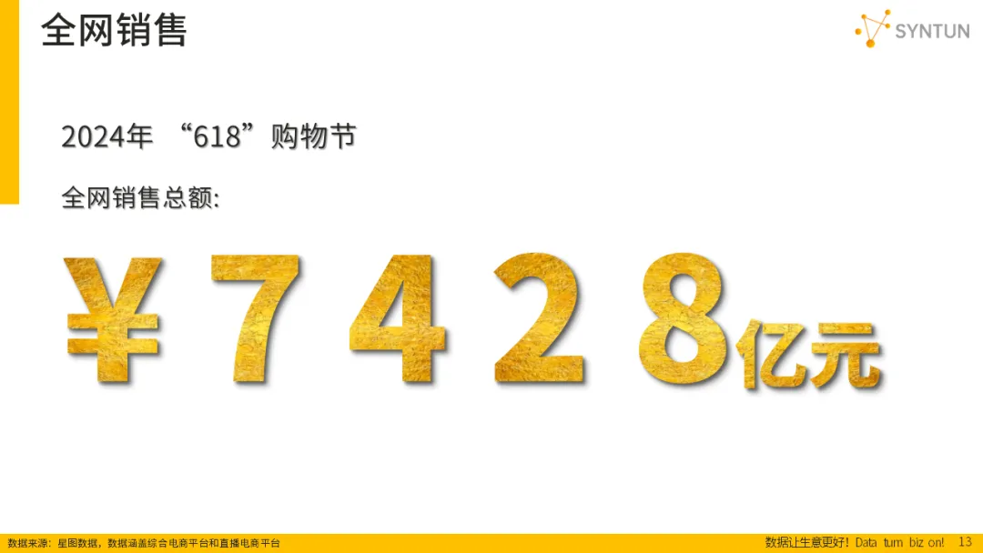 2024年618终于落下帷幕。星图监测数据显示,从各平台618起始时间至6月18日23:59,综合电商平台和直播平台的累积销售额高达7428亿元,显示出消费者强大的购买力和电商市场的活力。