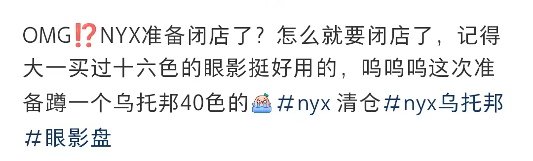 该品牌自进入中国市场以来,在消费者中的知名度并不算低,还被称为平替版“MAC”。因此一些消费者在听到NYX天猫闭店的消息时感到很惊讶:“太突然了”。