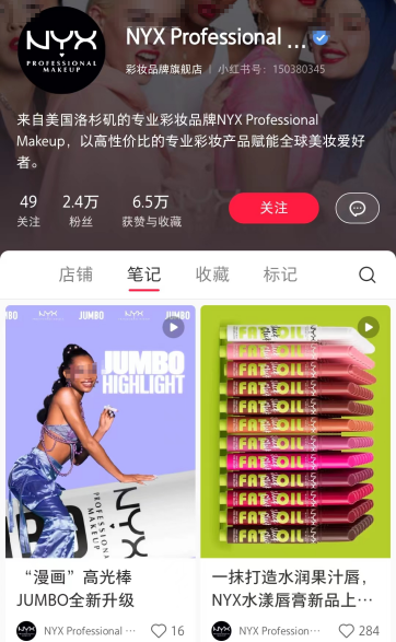 而NYX在国内社交媒体上的声量并不大。NYX的小红书账号只有2.4万粉丝,抖音账号粉丝数也不超过5.8万,两个平台所发的作品数据也并不好。