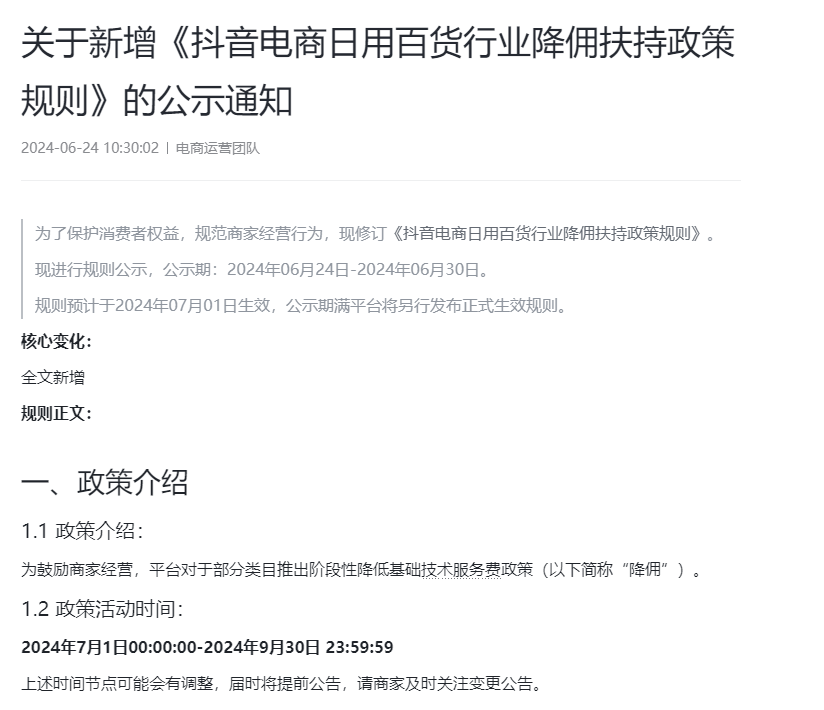 据悉,此次政策调整,旨在通过降低佣金扣点,直接减轻商家的经营负担,助力其在激烈的市场竞争中稳健前行。