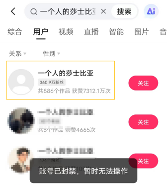 而这两天,大家关注最多的且在网络上引起激烈讨论的当属千万网红“一个人的莎士比亚”在快手被封号的事了。
