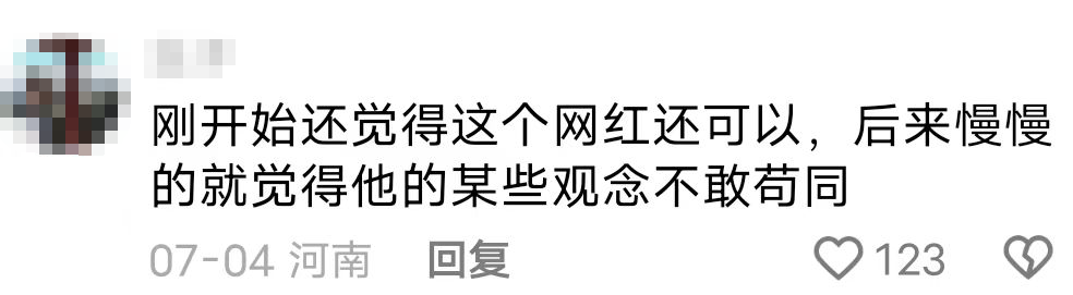 而一些持相反意见的网友则表示:“刚开始还觉得这个网红可以,后来慢慢就觉得他的某些观念不敢苟同”“个人觉得应该整治了,他确实有些个人极端主义了,容易带偏一部分人”。