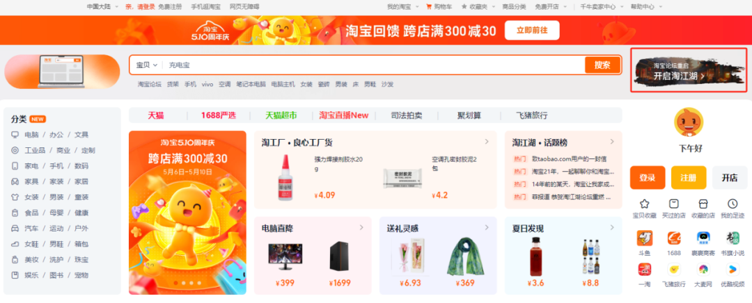 同时,淘宝还在首页显眼位置重新上线了淘宝网早期论坛“淘江湖”。