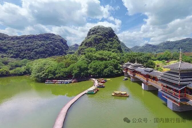 第一个是大龙潭风景区。也就是大龙潭公园,这是柳州知名度最高的景区,是4A景区,因为大龙潭而闻名。景区在柳州市鱼峰区,距离市中心只有3公里,可以乘坐19路公交车直达终点站龙潭公园。公园里有天然形成的喀斯特地貌山水,仅凭这一点就秒杀很多人造公园。园内还有真正的历史遗迹,例如谭边的祷雨文碑亭、祭台、侧山楼和八龙喷雪坝等,这些小景点统称为“古汉文化区”。公园内还有广西当地的特色民族建筑,例如鼓楼、龙潭风雨桥、侗乡深处居和轻松山房等。