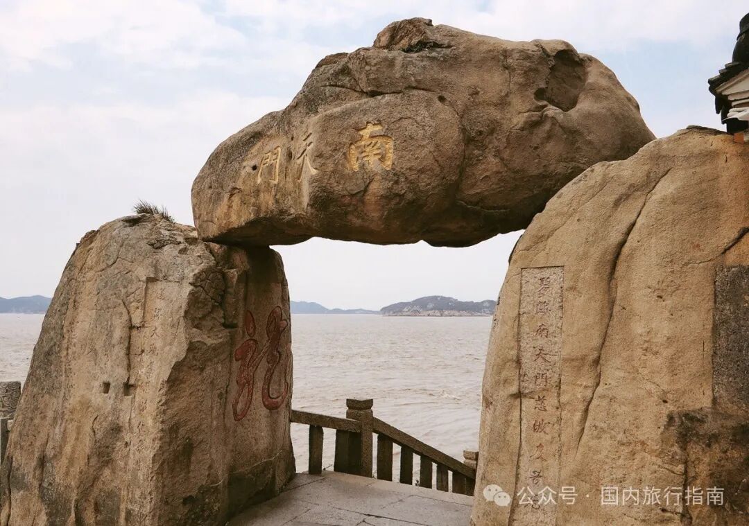 第三个是怪石。普陀山的主要景观虽然是寺庙,但这里的自然风光也不错,普陀山景区有三个石洞,分别名为朝阳洞、潮音洞和梵音洞。朝阳洞的初映台有“朝阳涌日”奇观,这些石洞里还有一些不大的奇石,例如槃陀石和海天佛国石等。除了洞里的景观,山上还有很多巨石,其中最知名的当属南天门,门内岩石上还有很多古代摩崖石刻,书法水平较高,值得一看。