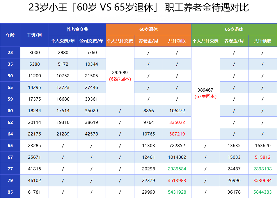 实际上,你领养老金的时间也在相应变少,这个影响在不同情况下差别是很大的!