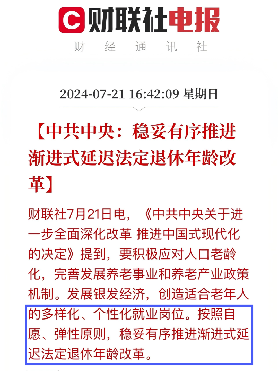 需要注意的是《决定》提的延迟退休,依旧为:弹性、渐进式。