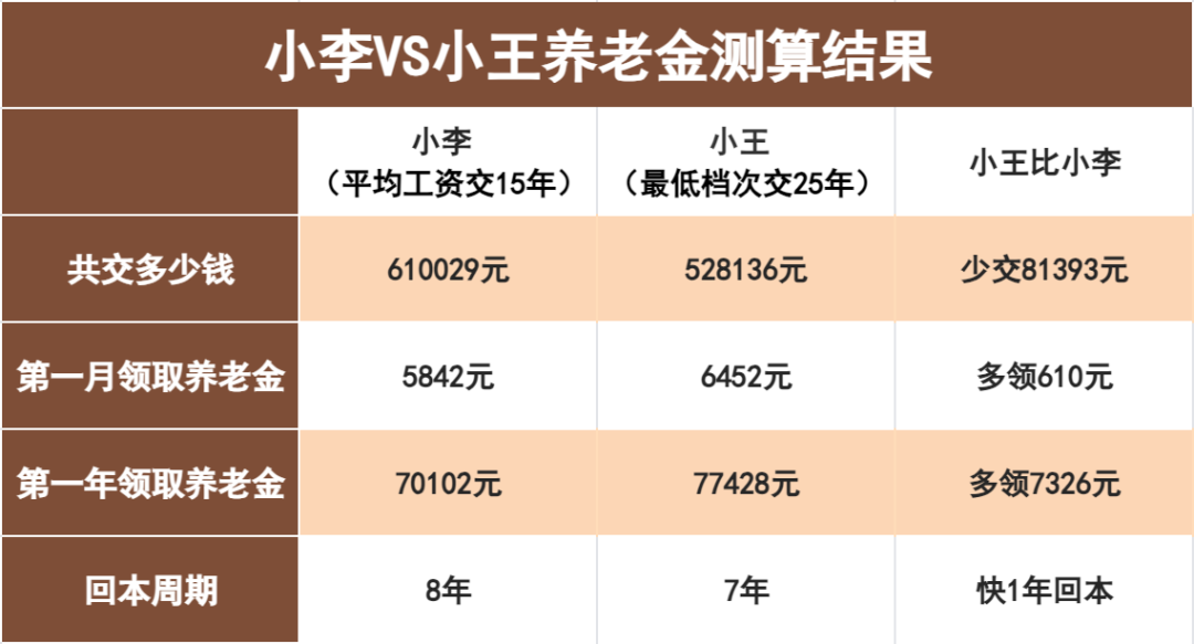 等到 55 岁退休,老王比起老李总共少交了 8 万多不说,
