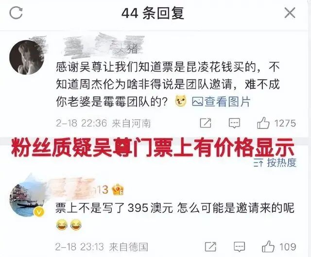 而昨天,吴尊又发文感谢周董老婆昆凌送霉霉演唱会门票,疑似坐实昆凌一家是花钱买了演唱会的公关票,间接打脸周董“被邀请”的说法。
