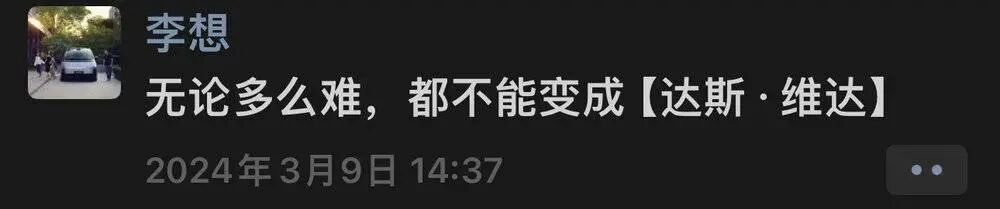 3月9日,李想发文“无论多难,都不能变成【达斯·维达】(《星球大战》中著名的反派角色)”。