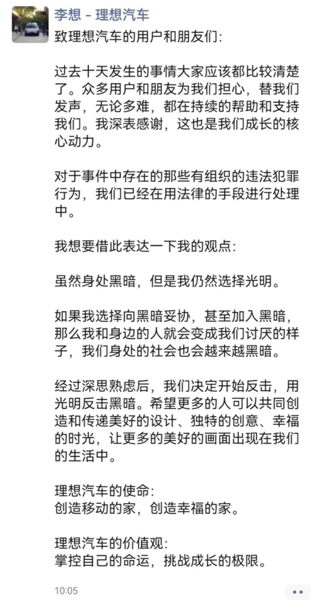 3月11日,李想写了封《致理想汽车的用户和朋友们》的信。