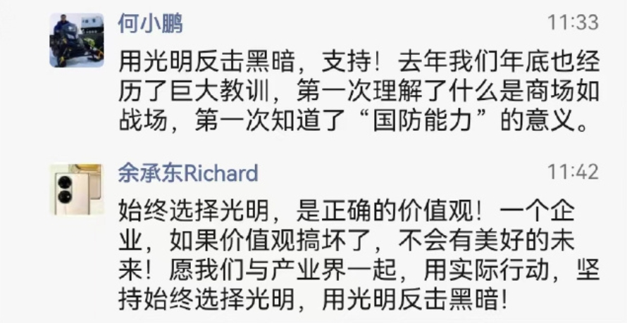 不久,车圈同行小鹏汽车创始人何小鹏、华为余承东第一时间表态支持李想!