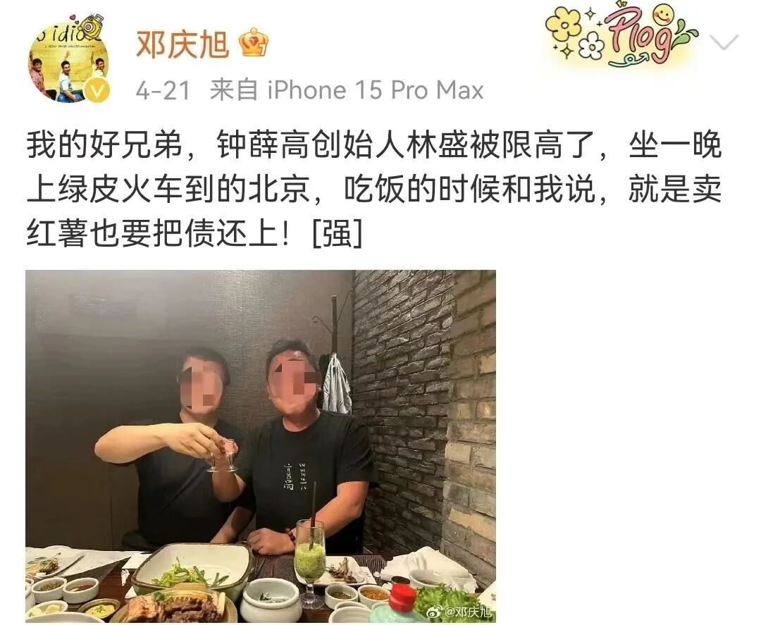 4月份的某个夜晚,新浪财经CEO邓庆旭发了一条微博。照片中他与林盛喝酒,席间林盛透露,卖红薯也要把债还上。