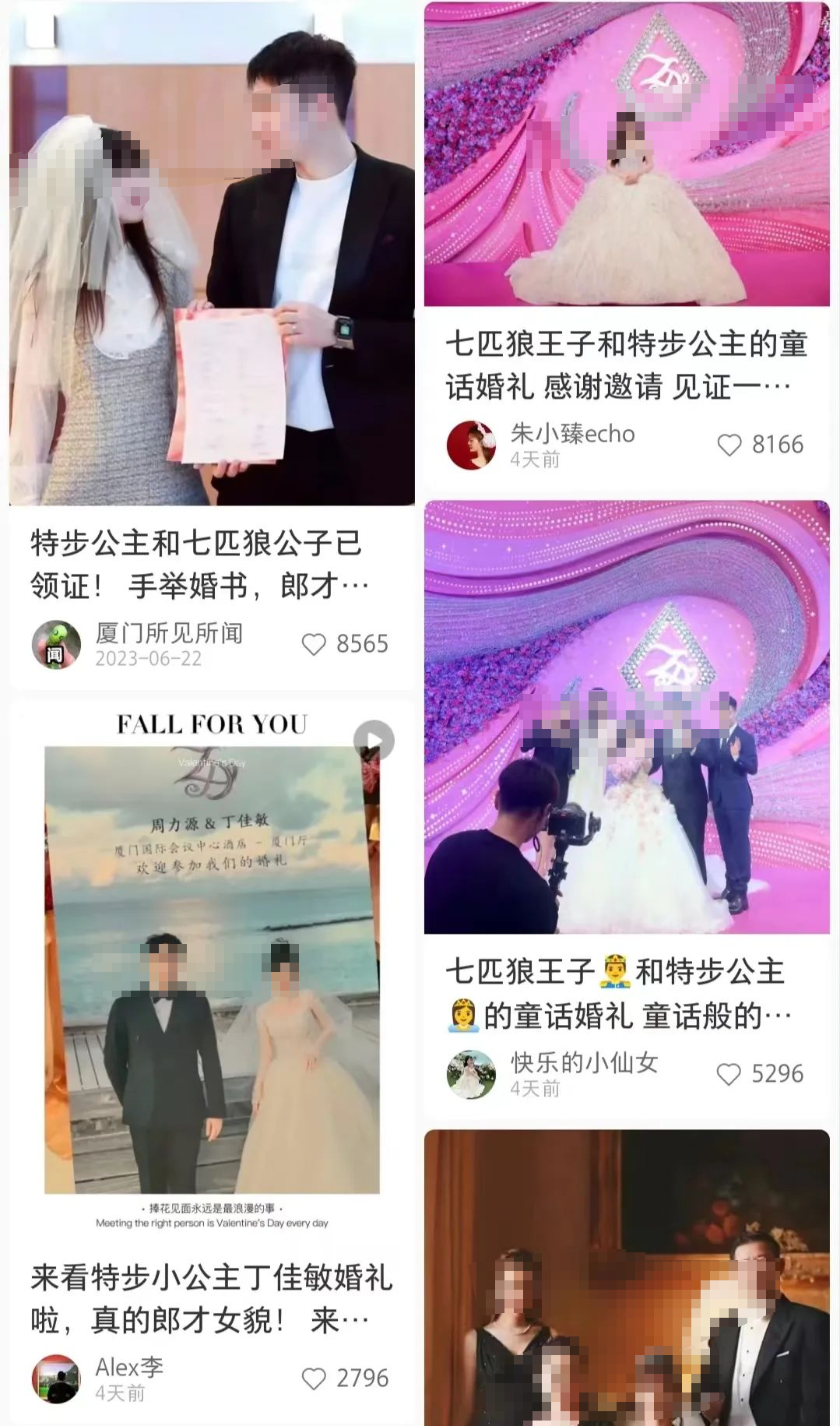 两人的行为、舆论也比较正向,对品牌而言,这波流量肯定是不吃白不吃。尤其是在女性用户、年轻用户更多的小红书,一波有#童话婚礼#商业联姻等话题加持的笔记发出,流量瞬间爆炸。