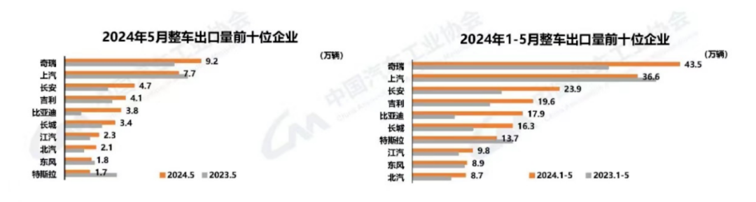 奇瑞在海外市场耕耘多年,2023年的出口93.7万辆,约占总销量的50%,今年1-5月,奇瑞实现出口43.5万辆,接近总销量的半壁江山,同比增长31%。