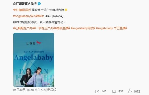 在此,也不得不佩服红蜻蜓的品牌部,罔顾品牌形象,对baby不离不弃,可能也是看中了杨颖身上的流量价值吧(坊间传闻杨颖和红蜻蜓总裁夫人是好朋友,这方面就不深入讨论了)。