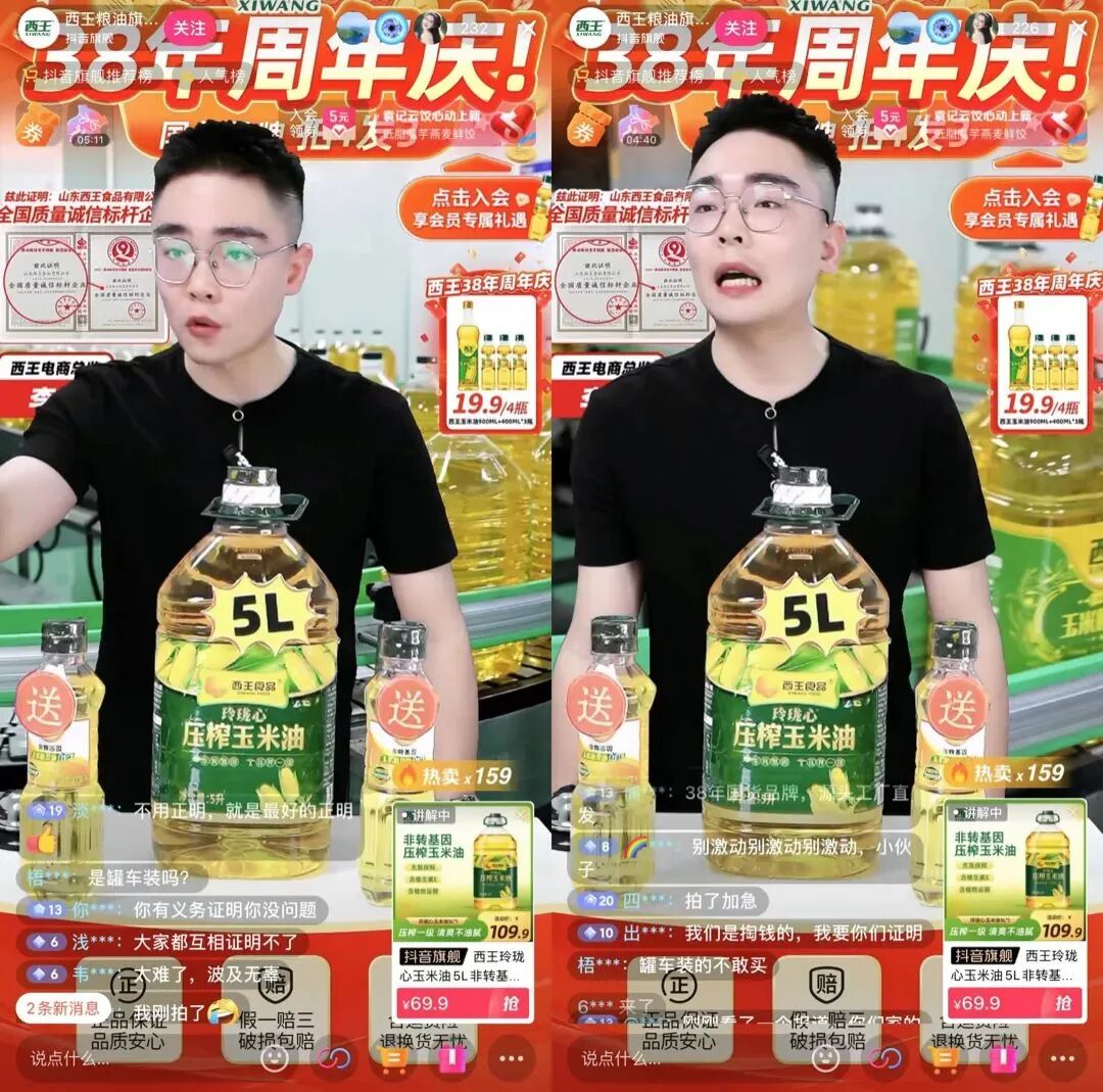 相较于金龙鱼的保持沉默和鲁花的喝油自证,西王的主播霸气十足,选择跟网友硬刚对喷。