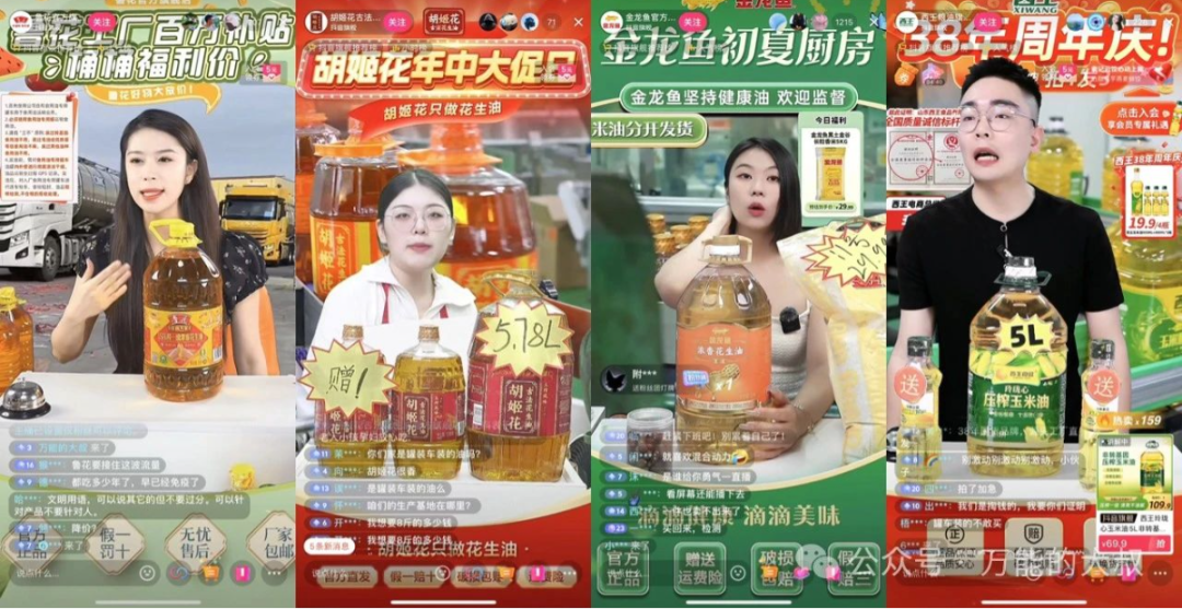 尽管企业的公信力遭受严重冲击,但品牌商们促销的脚步依旧没停下。直播间成了食用油品牌角力的新战场。