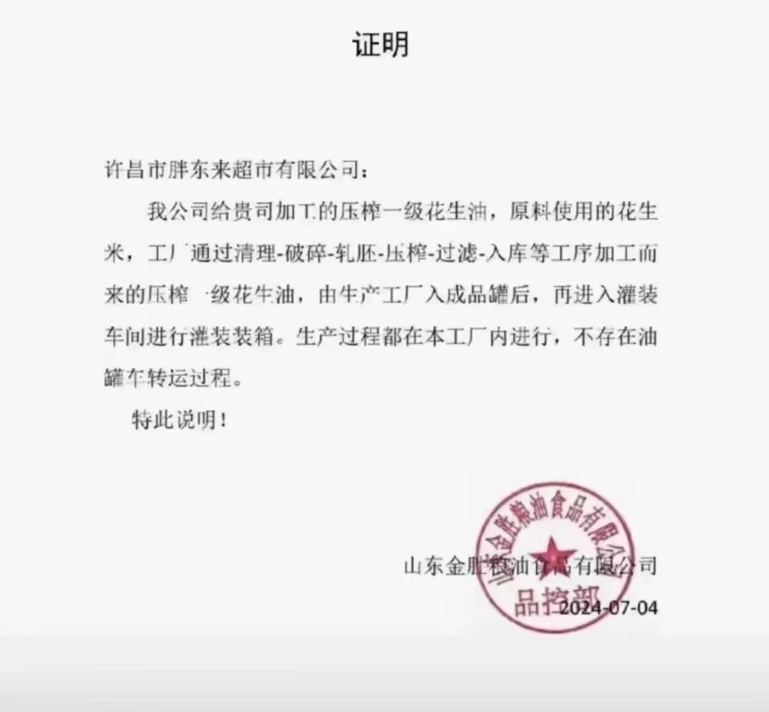 但据说胖东来的自营食用油并非自家生产基地出产,而是委托其他粮油企业生产的。