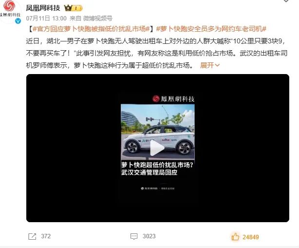 就在刚刚,#萝卜快跑回应网约车罢工横停马路#又上了热搜!