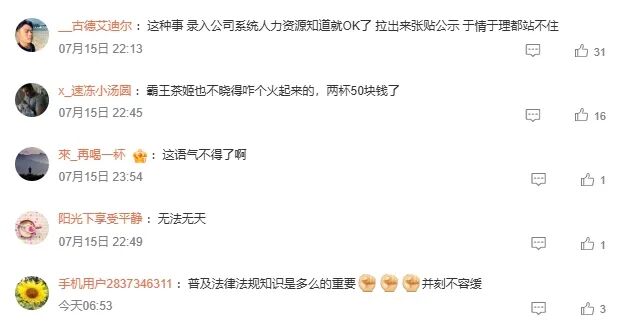而霸王茶姬的声明只提及调查和处理方案,并未对这一行为表态,也未提及员工劳动权益保护的问题。