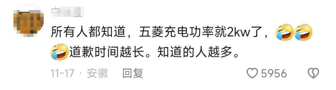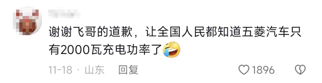 见此情景,五菱法务部蚌埠住了,在王飞第五次道歉之后,主动选择了和解。原因很简单,王飞再这样道歉下去,五菱汽车只有“2千瓦充电功率”很可能演变成人尽皆知,起震慑作用的律师函,反将变成对品牌的反向宣传。