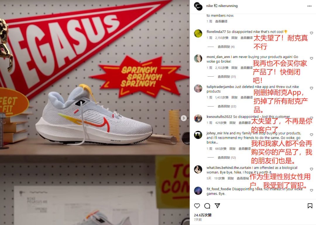 同时,Nike借政治正确进行营销炒作的“心机”也被批判。