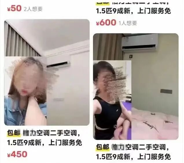 不过,他们再猛,也猛不过玩“真枪实弹”的闲鱼。最近闲鱼被曝出,一些卖家表面上卖二手空调,实则是在进行性交易。