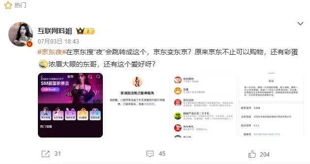 一向以“正儿八经”形象示人的京东,这次也按捺不住来凑热闹!其 App 内的“夜谜”小程序,近日被曝光大玩“擦边球”把戏!