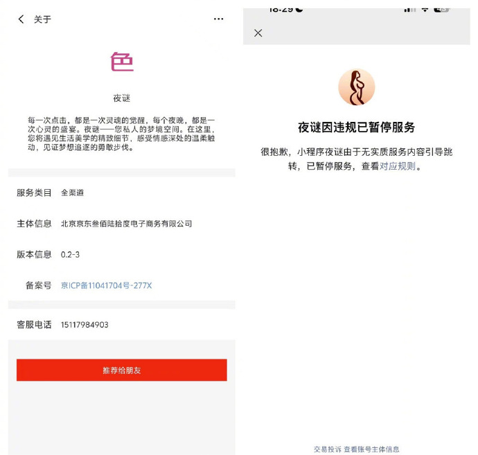 其实,这个“黄色”小程序已经不是第一次上线。早在7月初就因内容尺度问题被叫停过,在微信上也因违规被下架。