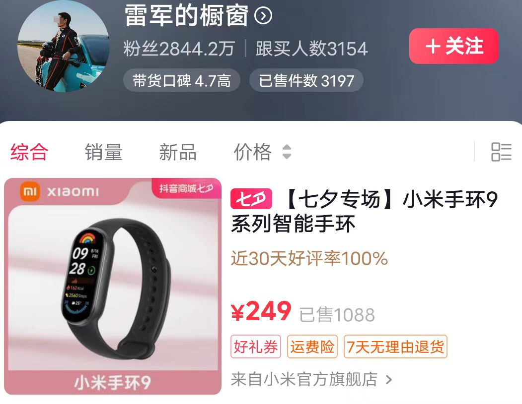 就在昨日,雷军抖音橱窗悄然上架小米手环,正式吹响了他带货的号角。