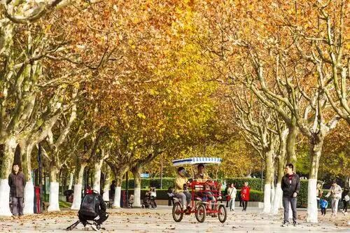 前几天去走了下,正好看到了很多共享4轮游览车,因为不是节假日,所以大多都停在棚子里,