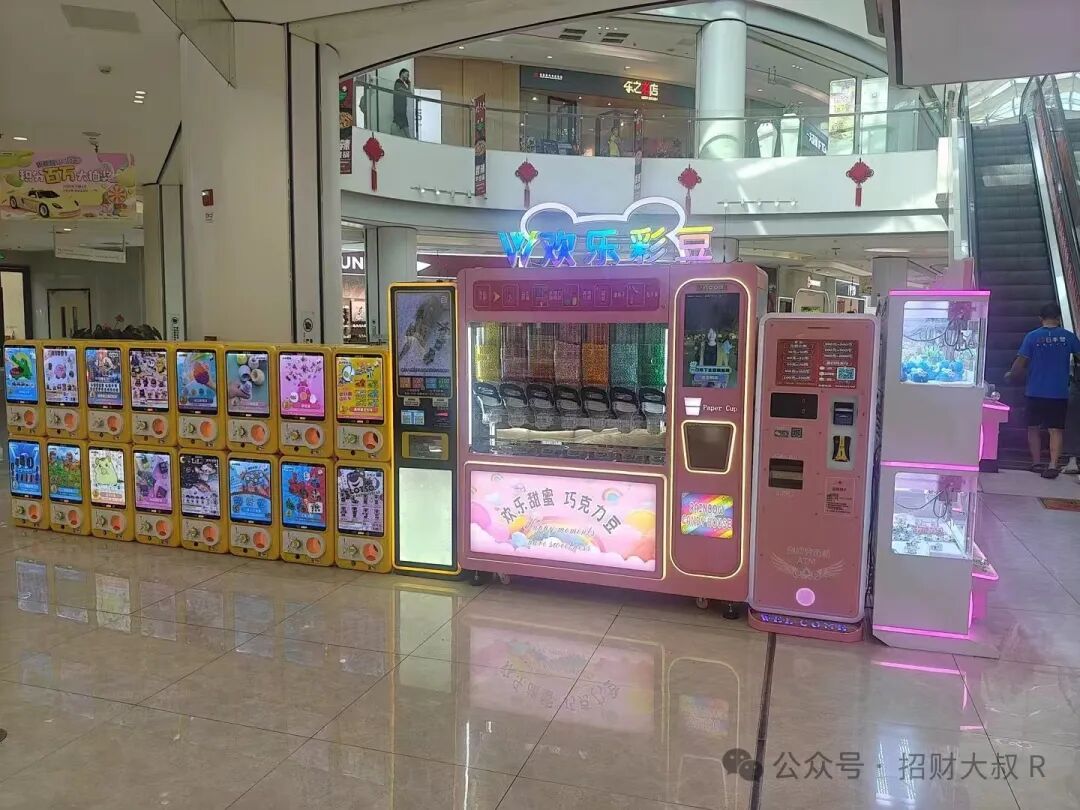 岳总目前的巧克力豆售卖机,铺在商场,大型儿童乐园,图书管,海洋馆,甚至浴场,