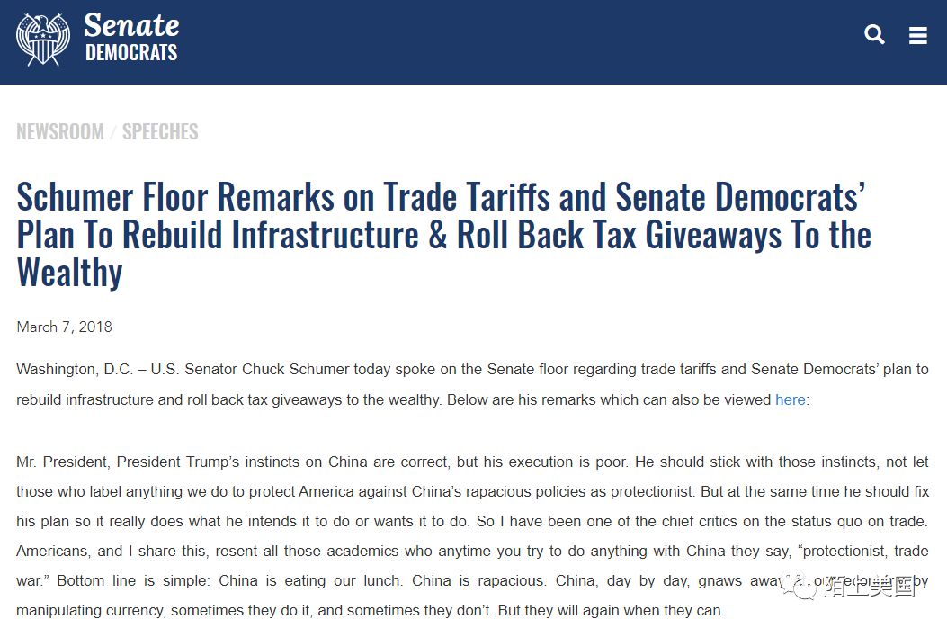 参议员Schumer网站上的申明