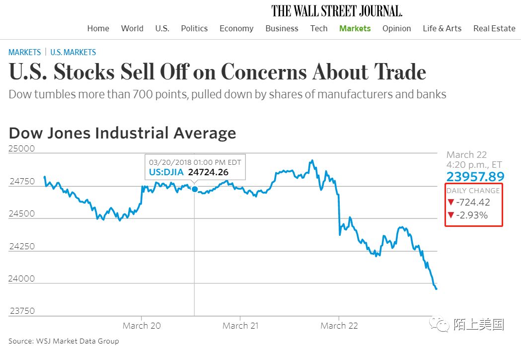 2. 股市做出快速反应,道琼斯指数周四一日下跌720多点