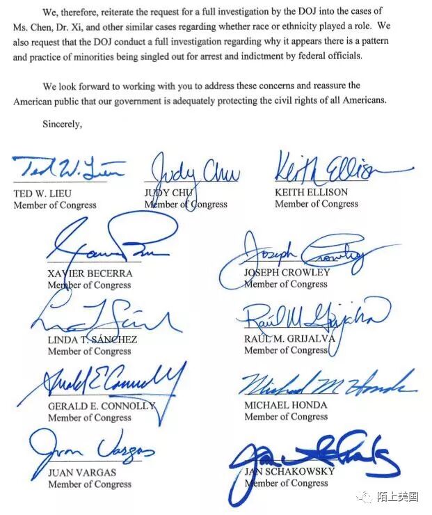 “刘云平发起的国会议员写给司法部的信,有40多位议员签名。"