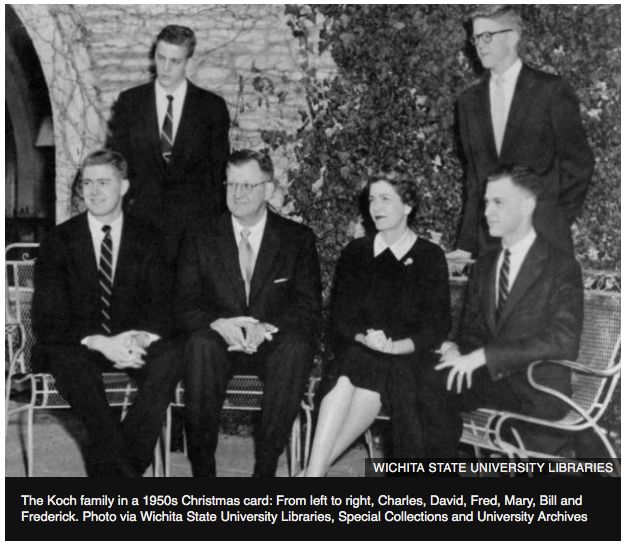 科赫兄弟出生于堪州威奇托城市的富甲科赫家,完整的科赫兄弟其实有四个人。老大弗雷德里克出生于1933年,接着是查尔斯(1935年)和双胞胎的比尔和大卫(1940年)。
