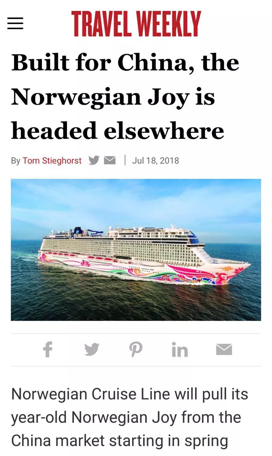 这个是有先例的,去年不是有家挪威的豪华游轮航线退出中国市场吗?