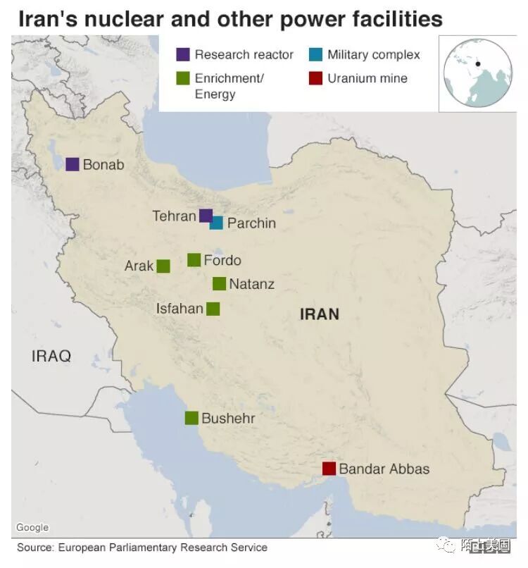 伊朗核武器原料和其他军事基地地图 来自BBC