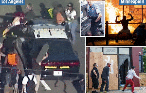 抗议、骚动和暴乱很快在不同城市接力,洛杉矶出现抗议游行,愤怒的人把怒火发泄到警察身上,围攻警车。在警察驱车脱离现场的时候,有人因追逐摔成重伤。