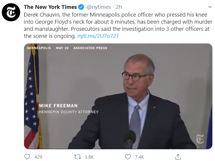 然而就在这样一个疫情中有些平淡也有些淡淡焦虑的周一,47岁的乔治·弗洛伊德却因一名叫德里克·沙文(Derek Chauvin)的警察的暴力执法,停止了呼吸。