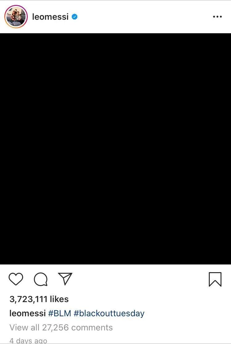 很多人在instagram上参加了blackouttuesday活动,甚至包括梅西等国际明星
