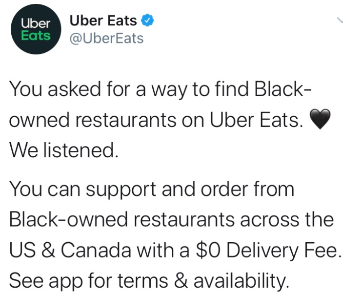 另一个例子,近日UberEats, Yelp等平台纷纷给非裔企业主运营的餐厅免运费、打折。我们都知道经营餐厅是许多白手起家的亚洲一代移民的谋生手段。难道亚裔不是少数族裔了吗?不是这些平台的顾客吗?但是被遗忘了。为什么这些平台可以打着公平的旗号搞“制度性的歧视”?