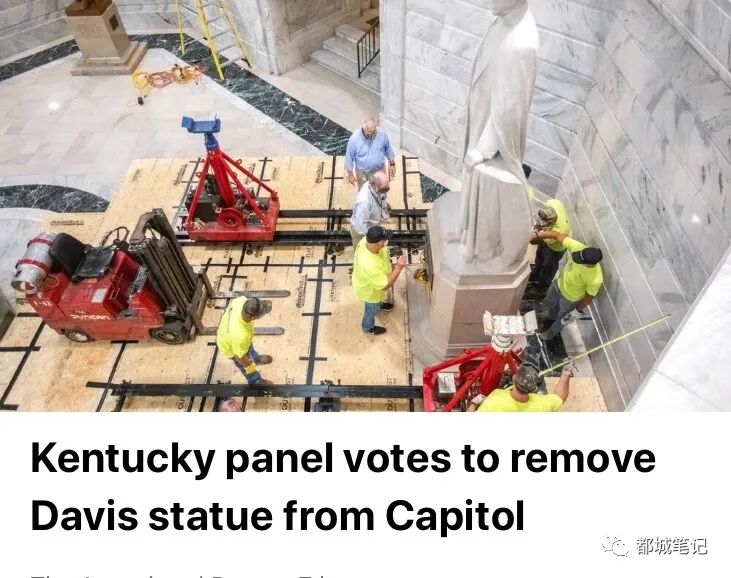 在肯塔基州,州议会大厦投票拆除同盟总统杰斐逊·戴维斯的雕像。
