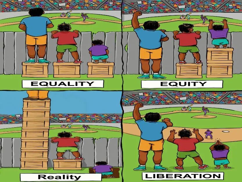 在平权运动的问题上,华人的文化传统和特性,决定了其选择的路径。借用一幅网上流传甚广的图片,谈谈我的看法: