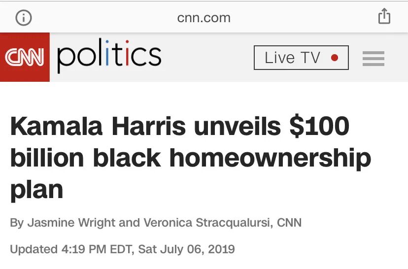 首先,她一路的辩论表现无不体现她是个360度全攻型的身份政治、族裔牌玩家,这在前面的分析中已经有所涉及。再补充一个新闻,她在初选中曾经明确指出要拨款1000亿美元专门给非裔买房。这种按照肤色分配的政策,矫枉过正,是把美国快马加鞭地赶向另一个方向的种族对立之路。