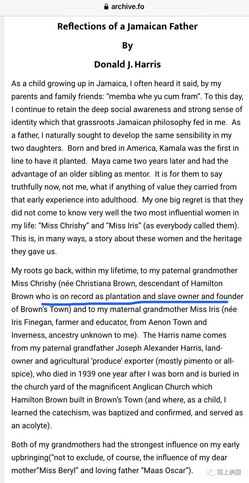 拥有好基因的哈瑞斯,其家世和成长经历与内城非裔穷人比,有着鲜明的不同。当她在总统初选首秀辩论中就用“我就是那个小女孩”的桥段打肤色牌,攻击拜登是“种族分子”后,自然备受争议。