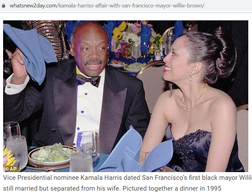 根据知名的事实调查网站snopes和前加州议长威利·布朗(Willie Brown) 自己的描述(5),1994年,与妻子分居多年的、60岁的布朗,跟29岁的哈瑞斯金风玉露相逢。