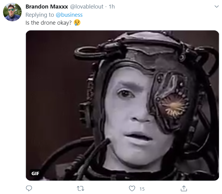 “这个无人机没事吧?”(配以流泪的表情)